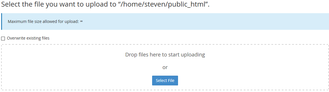 - From Windows Explorer or File Explorer (depending on your OS), drag and drop all files to the part that says 'Drop files are here to start uploading'. If you use this option, you are done with this part and you can continue to 'Creating an SQL database'